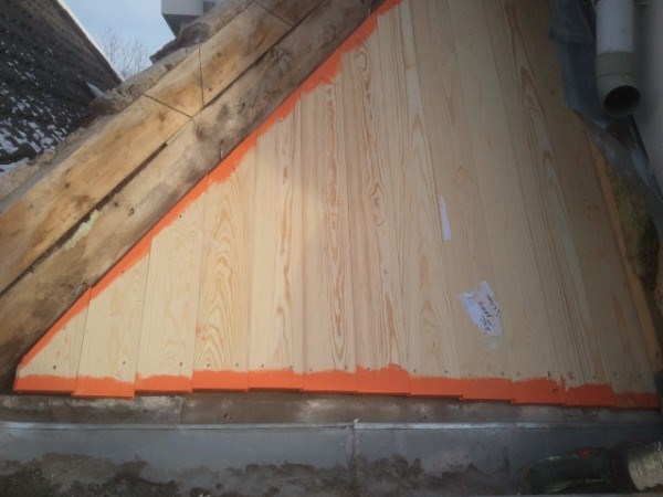 Gedeeltelijk vervangen dakbeschot tgv houtrot en aantasting houtboorders. Bestaande isolatie terug geplaatst, pannen vervangen en nokvorsten opnieuw aangesmeerd met zand/cement specie.